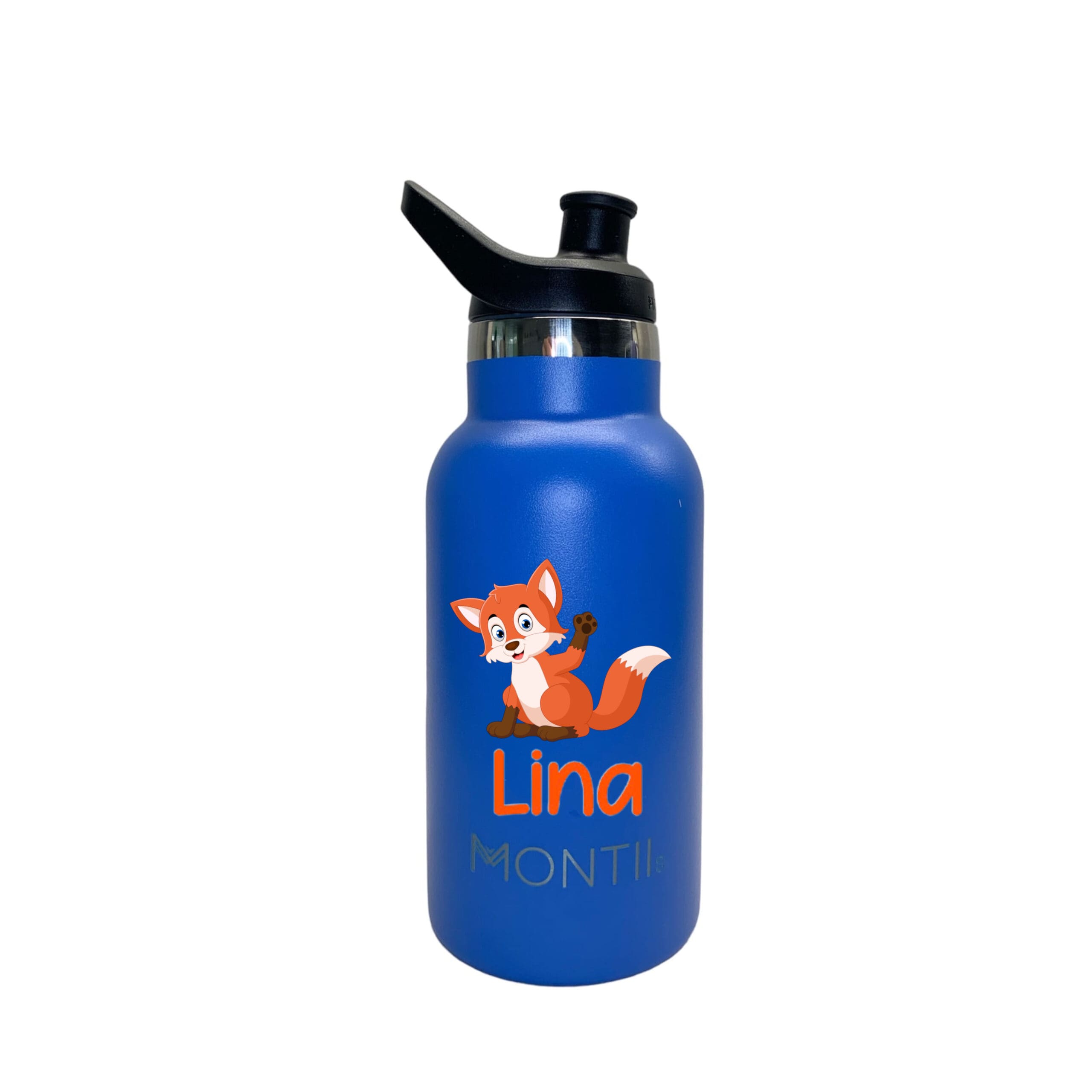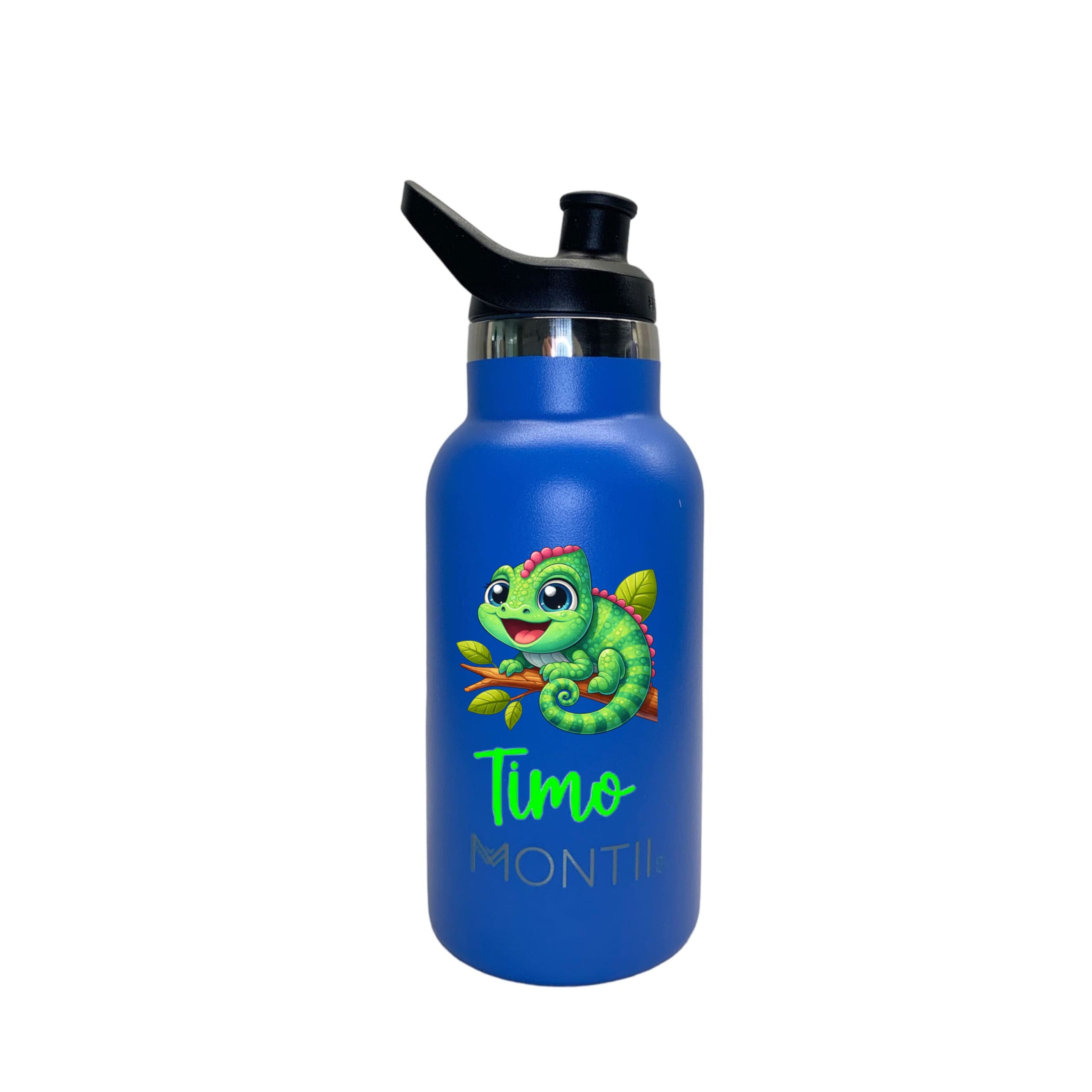 Eine nachhaltige, isolierte Edelstahlflasche für Kinder – robust, funktional und personalisierbar.