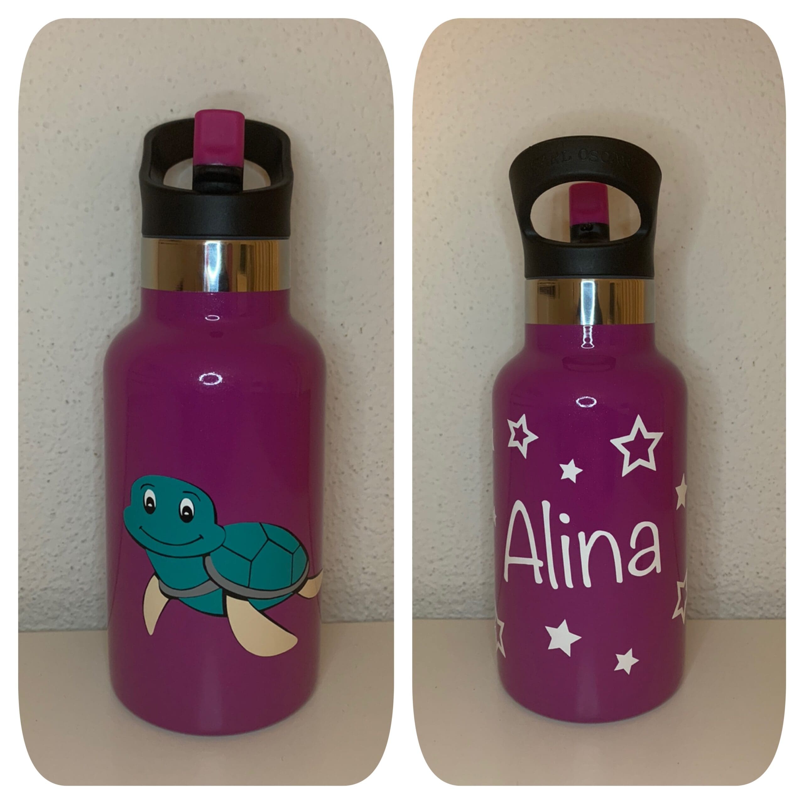 Wähle aus verschiedenen Farben und Motiven oder lade dein eigenes Design hoch – so wird die Trinkflasche zu einem einzigartigen Begleiter für dein Kind!