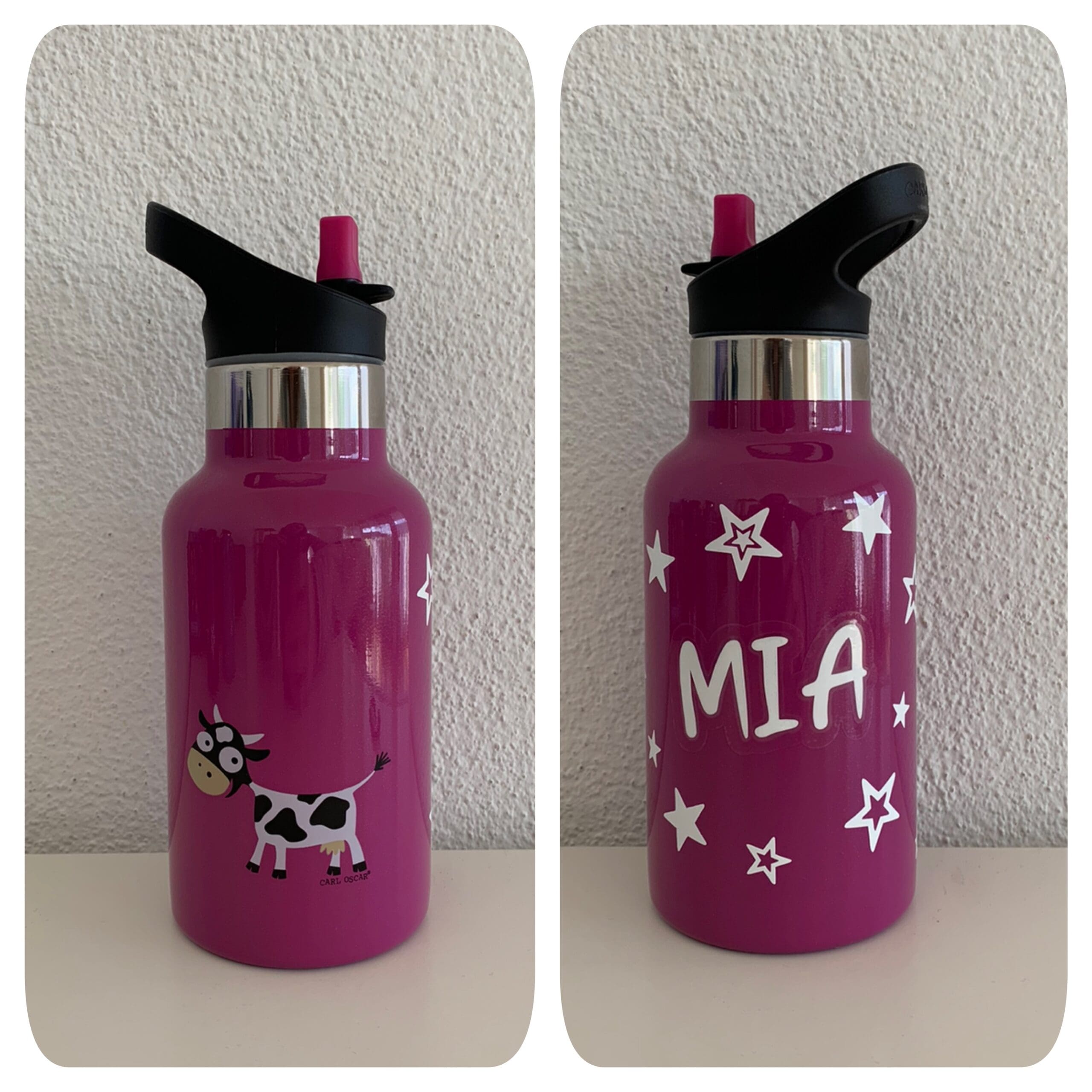 Kinder Thermosflasche Pink Carl Oscar TEMPflask 350ml| Mit Namen & Motiv bedruckt, auslaufsicher & isoliert