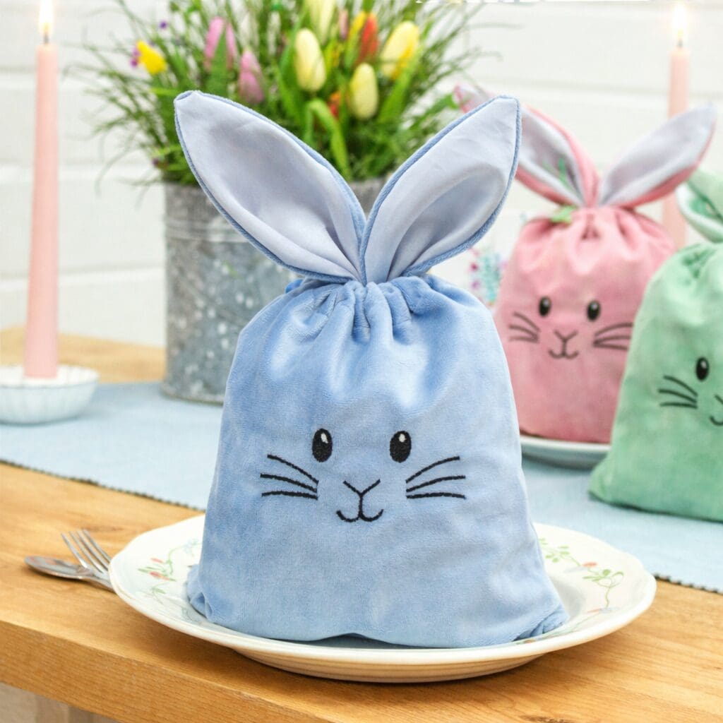 Osternest Hasensack aus Samt Blau – ideal als Geschenk