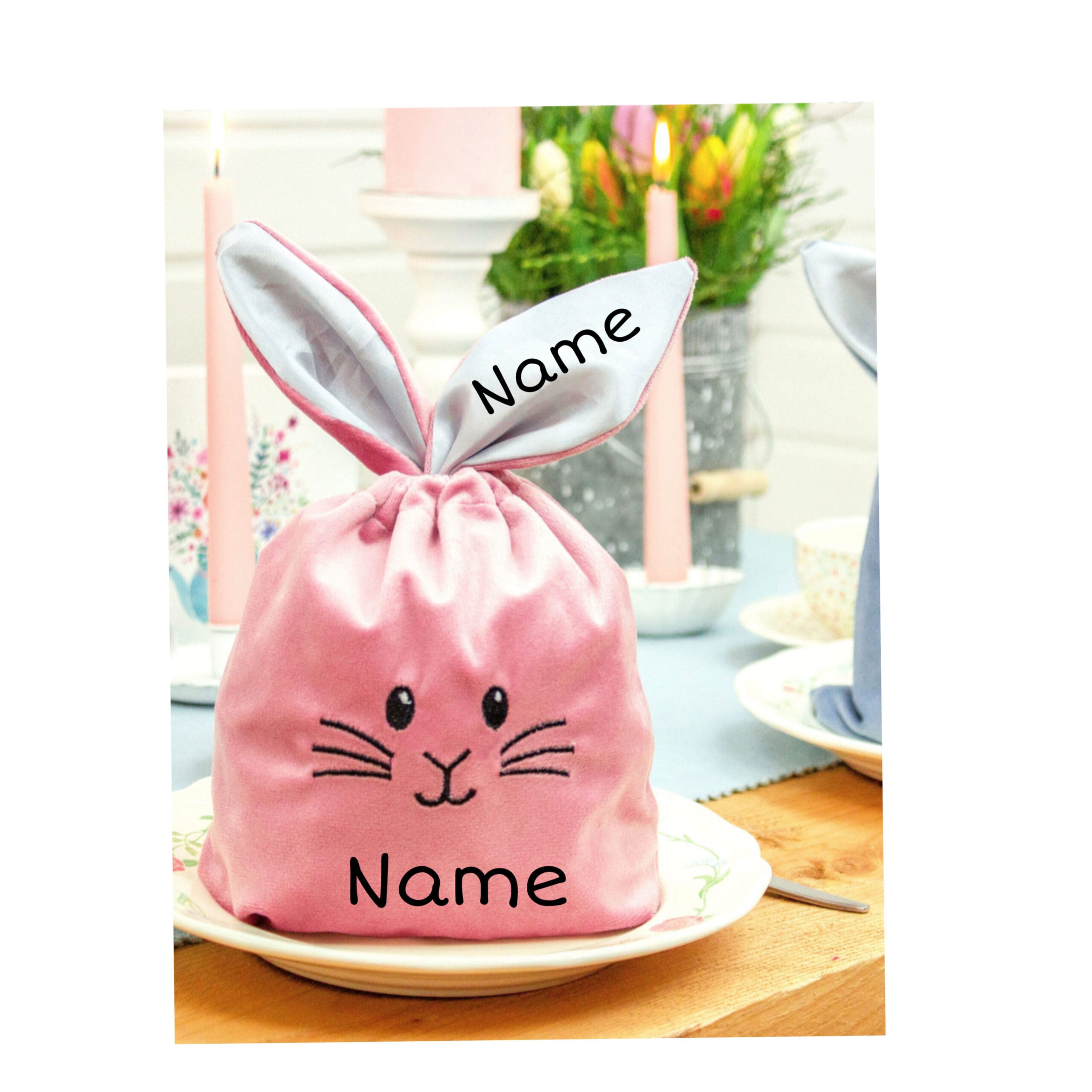 Osternest Hasensack aus Samt Rosa – personalisiert