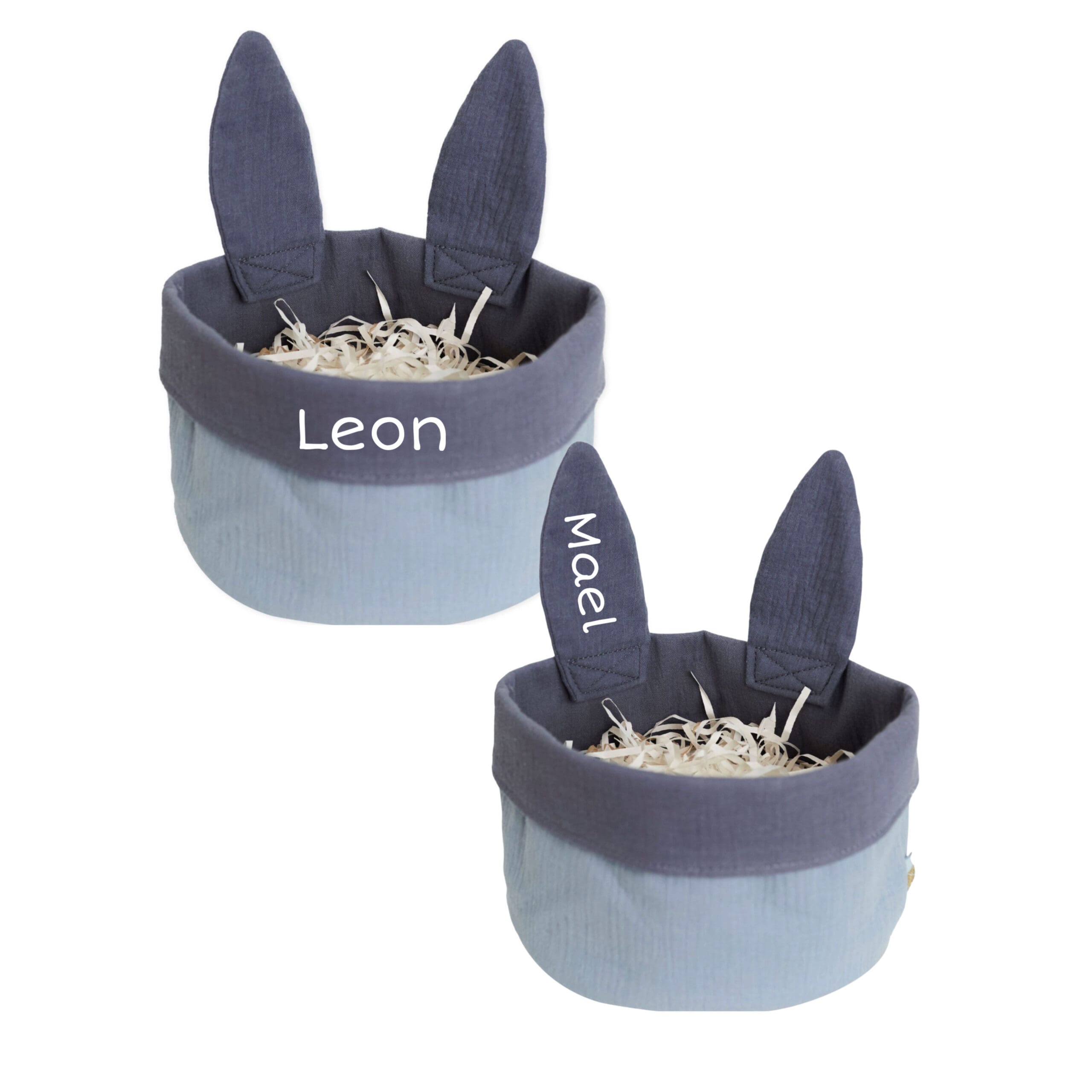 Das Osternest personalisiert Blau mit Hasenohren für Kinder ist eine liebevolle und praktische Lösung für die Ostereiersuche. Das weiche Stoffnest in zartem Blau mit Hasenohren eignet sich ideal als Osternest für Kinder und liegt angenehm in kleinen Händen.