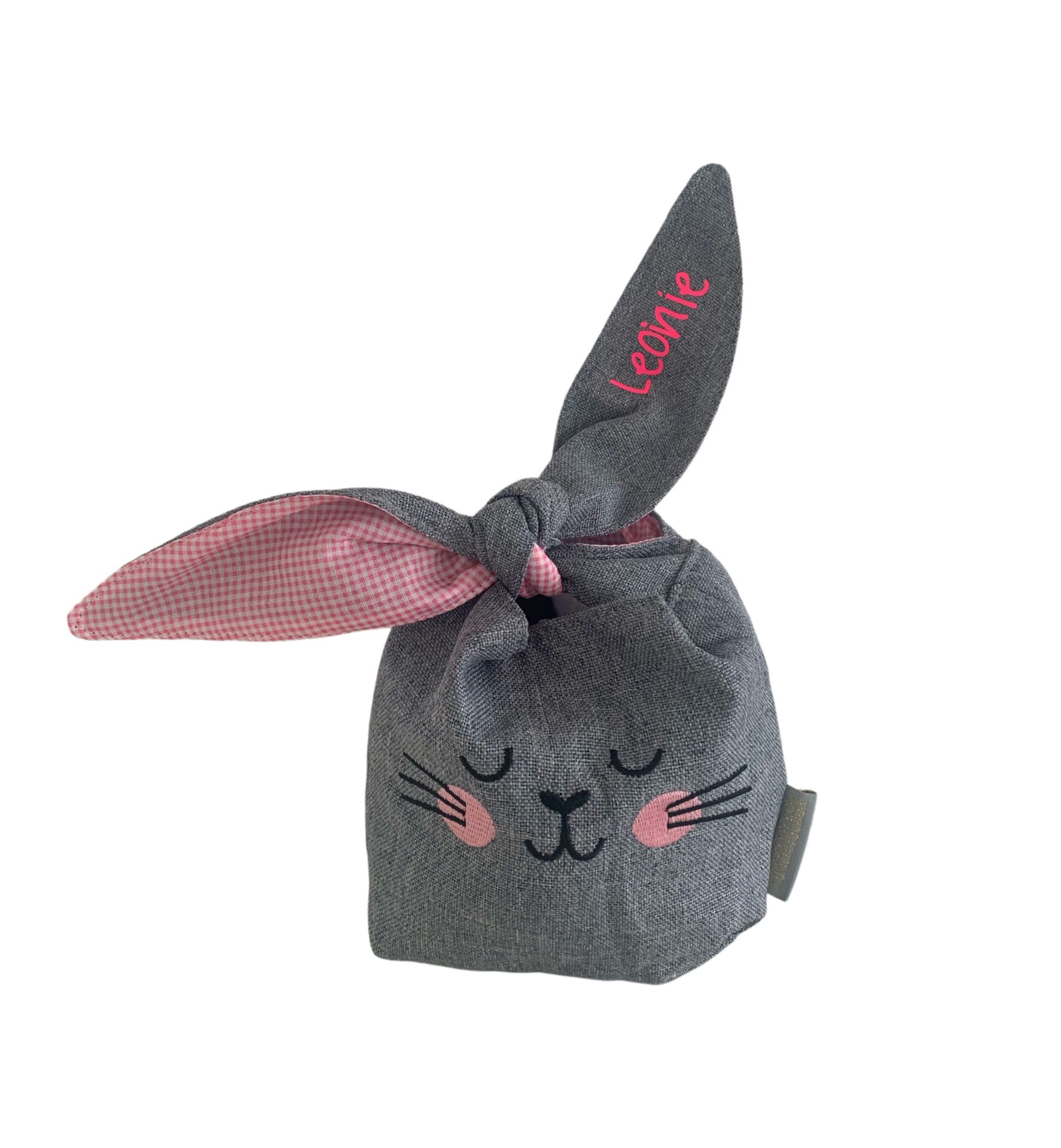 Niedlicher Hasenbeutel in Rosa mit besticktem Hasengesicht
