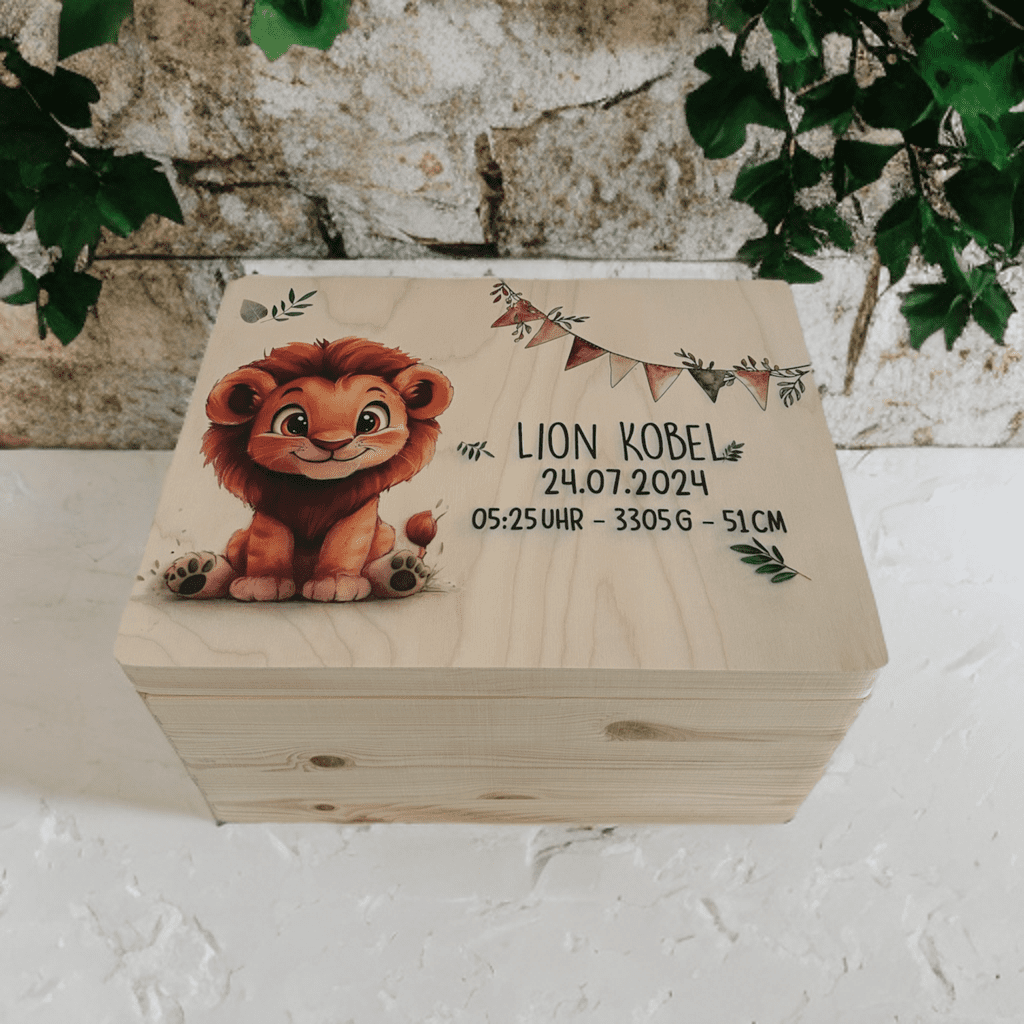 Personalisierte Erinnerungskiste Löwe – Ein Platz für kostbare Momente
