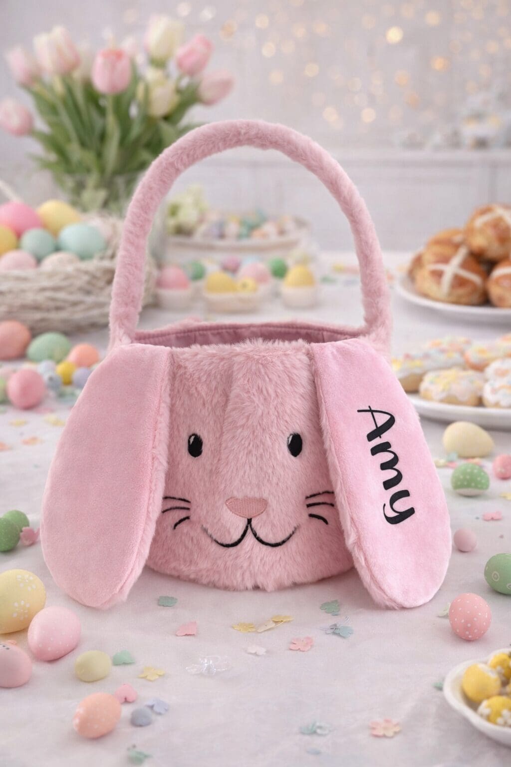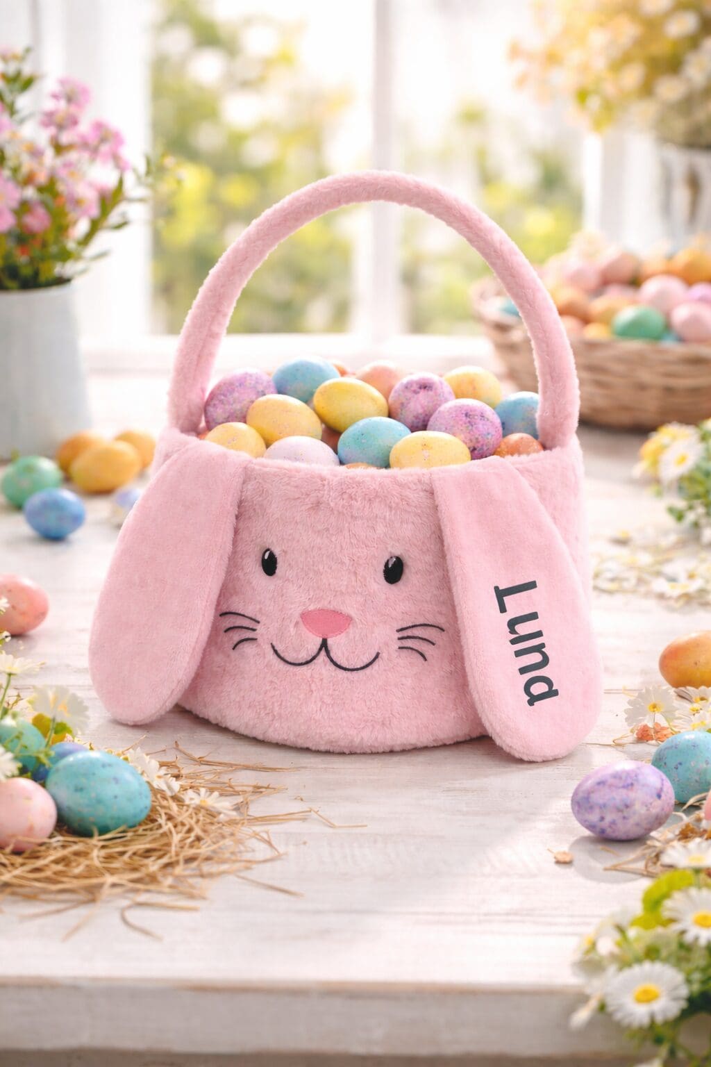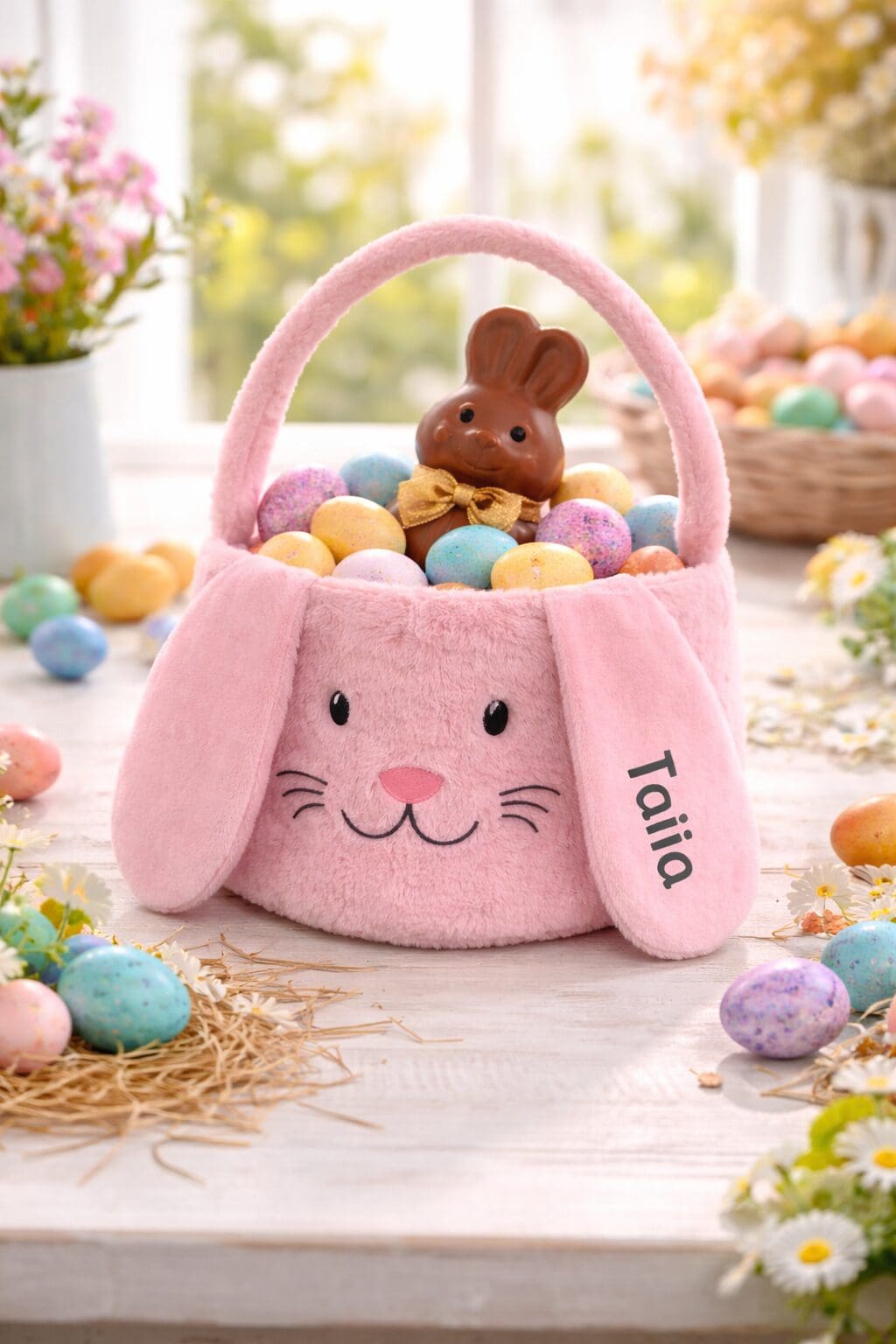 Ein Personalisierter Osterhasenkorb – Osternest rosa mit Namen ist eine liebevolle und persönliche Geschenkidee für Kinder zu Ostern. Der weiche Osterhasenkorb aus flauschigem rosafarbenem Plüsch begeistert mit seinen niedlichen Hasenohren und wird individuell mit dem gewünschten Namen personalisiert. So wird die Ostereiersuche zu einem ganz besonderen Erlebnis – ob im Garten, im Haus oder als dekoratives Highlight im Kinderzimmer.