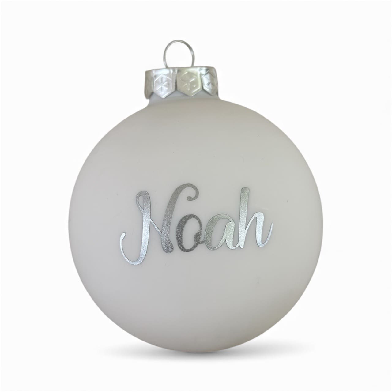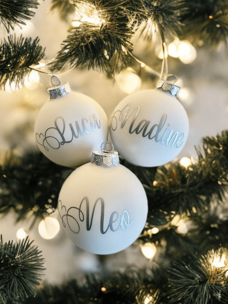 Die matte Oberfläche der weiss-seidenen Weihnachtskugel verleiht ihr einen ruhigen, edlen Charakter. Sie harmoniert perfekt mit warmen Lichtern, natürlichen Tannenzweigen oder klassischen Weihnachtsfarben. Die glänzende Folienbeschriftung setzt einen stilvollen Akzent und hebt den gewählten Namen wunderschön hervor. Dadurch wirkt die personalisierte Weihnachtskugel modern, schlicht und hochwertig zugleich.