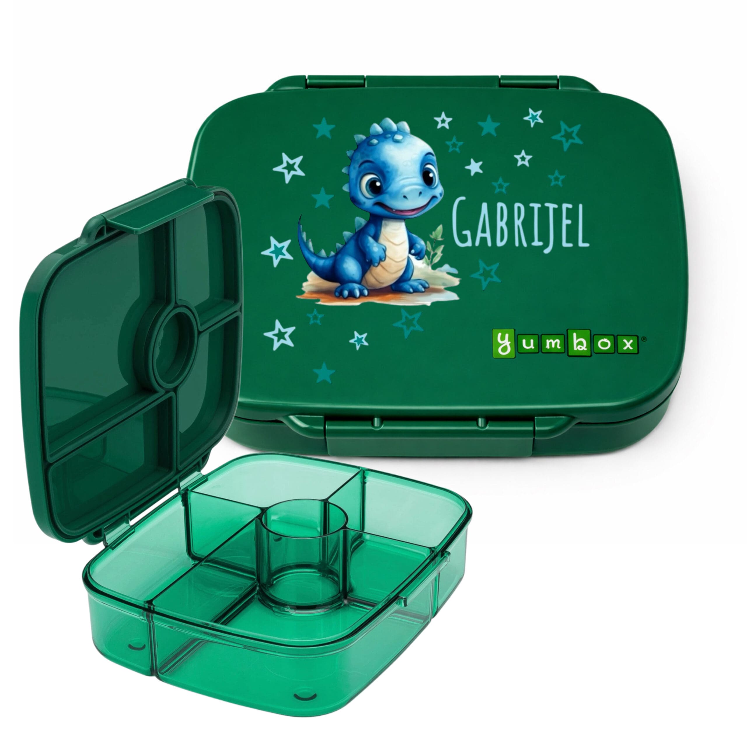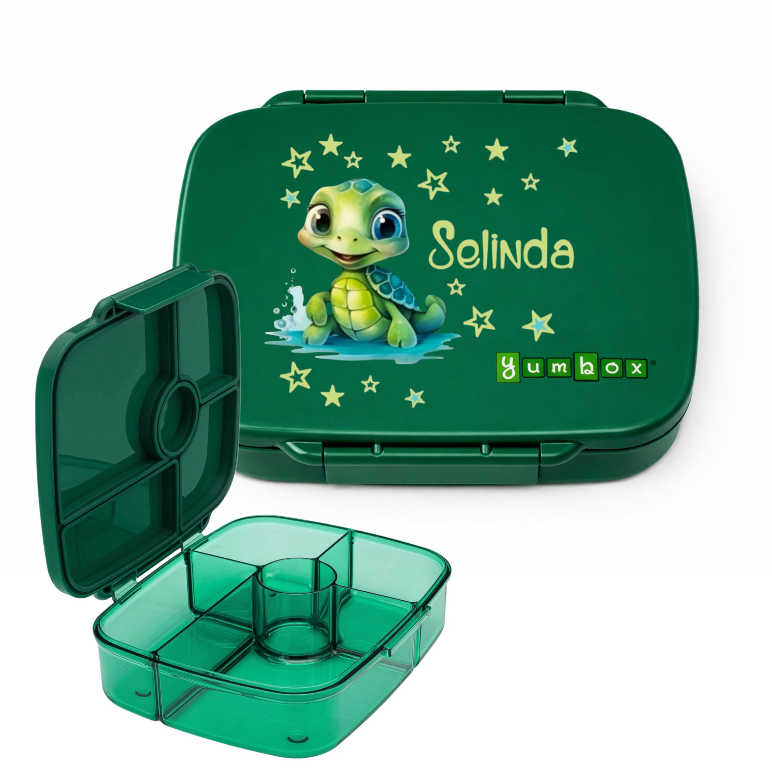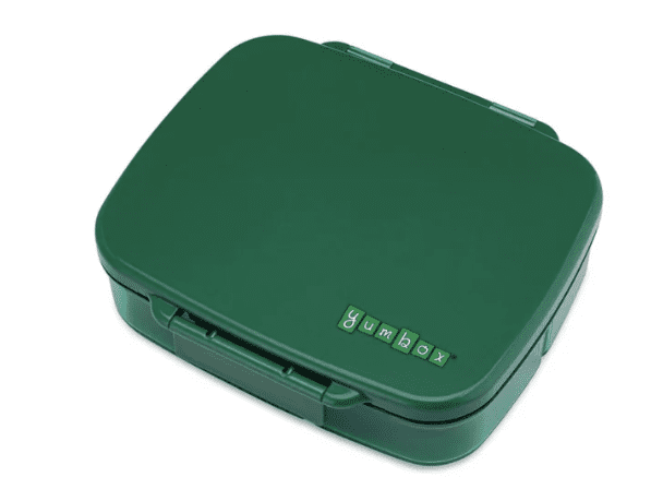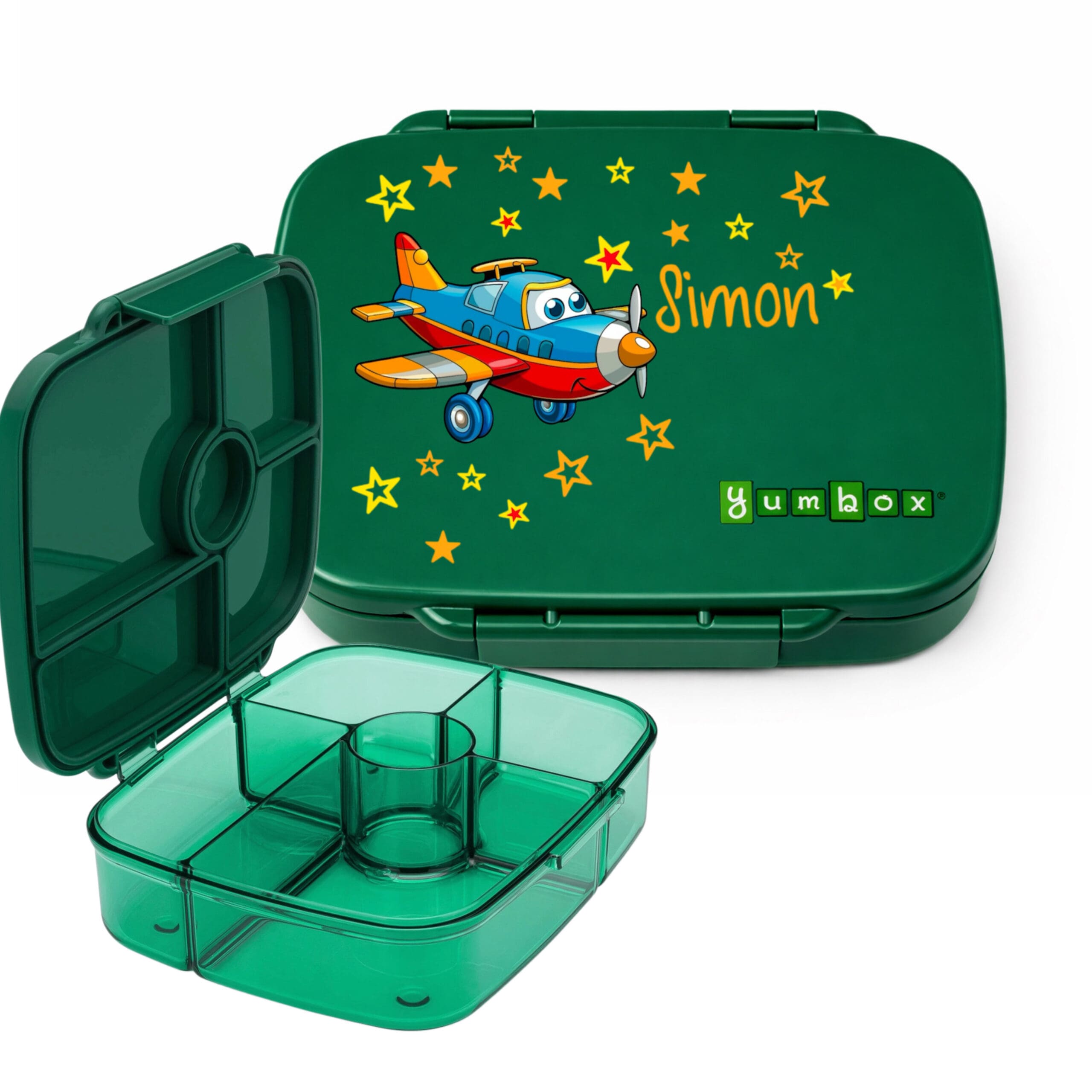 Die Znünibox Yumbox Go grün personalisiert mit Fächern überzeugt durch ihr auslaufsicheres Design. Egal ob im Rucksack, in der Schultasche oder im Arbeitsalltag – deine Lebensmittel bleiben sicher verstaut.