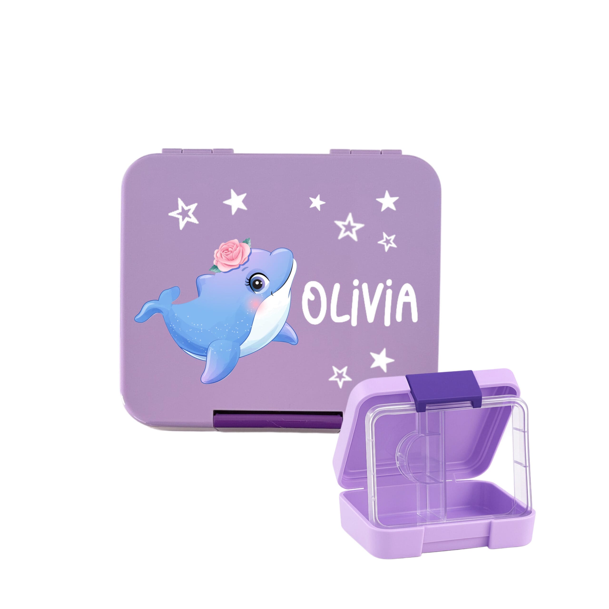 Die Znünibox für Mädchen Lila – personalisiert | Nilana eignet sich für Kinder im Alter von 3 bis 10 Jahren. Durch ihre kompakte Grösse und das praktische Design passt sie perfekt in Rucksäcke oder Taschen und ist der ideale Begleiter für den Kindergarten, die Schule oder für Ausflüge.